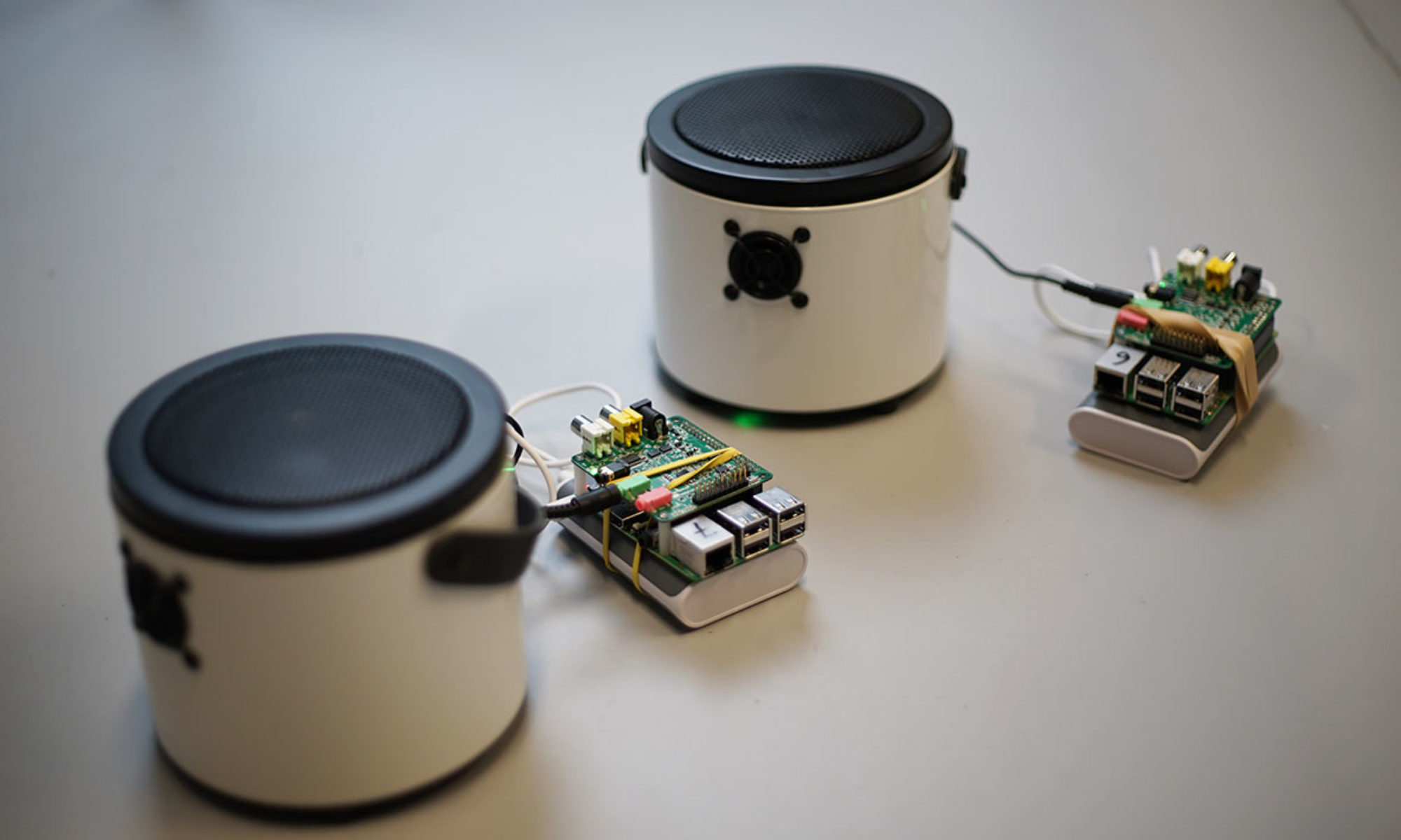 Zuerst haben wir experimentiert mit Bluetooth Lautsprechern (Bluetooth haben wir nicht gebraucht), aber die automatische Abschaltung wegen den Stromsparmodus war nicht optimal. Denn haben wir gesucht nach einem Lautsprecher mit grossem Batterie, und eventuell genug Platz die Raspis auch noch ein zu bauen. Wir haben diese gefunden in die hier benutzt Modelle, die Soundbuckets. Sie schalten nicht ab, haben ein gutes Volume, eine saftige Batterie, und eventuell genug Platz den Raspi noch ein zu bauen.